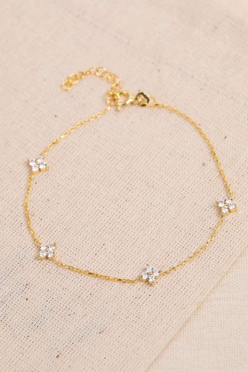 Dainty Silver Bracelet, Diamond Wedding Bracelet, Minimalist Gemstone Bracelet for Women, Bridesmaid Gifts, Christmas Gifts