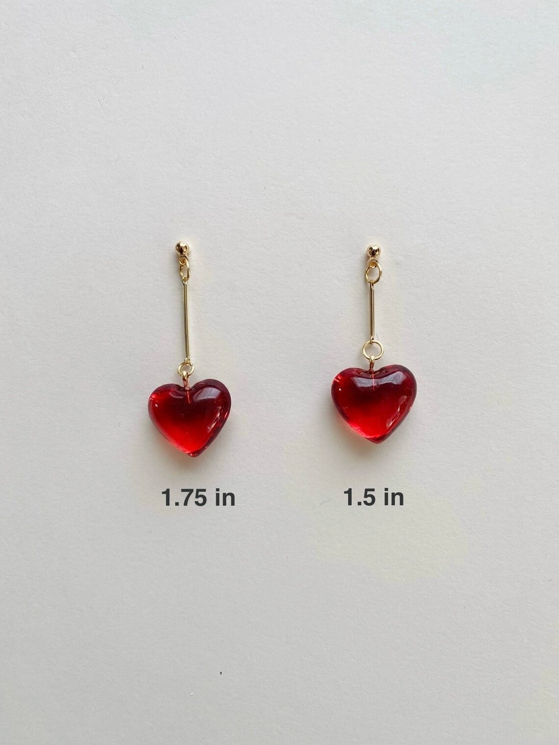 Red heart earring, handmade, drop earring, simple, cute, valentine earrings, valentine gift, birthday gift, mother’s day, sweetheart, gold