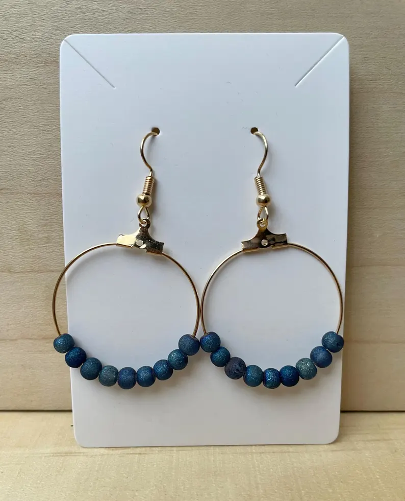 Round Gold Hoop Earrings with Twilight Blue Glitter Glass Beads / 30mm Hypoallergenic Nickel-Free Earrings / Blue Beaded Gold Hoop Earring